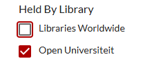 Via "Libraries Worldwide" option you can search through the collections of almost all university libraries worldwide.