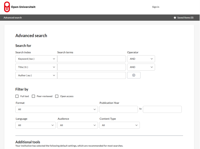 Searches will be done in:• the majority of the scientific information the Digital Library OU provides• supplemented with carefully selected open access sources